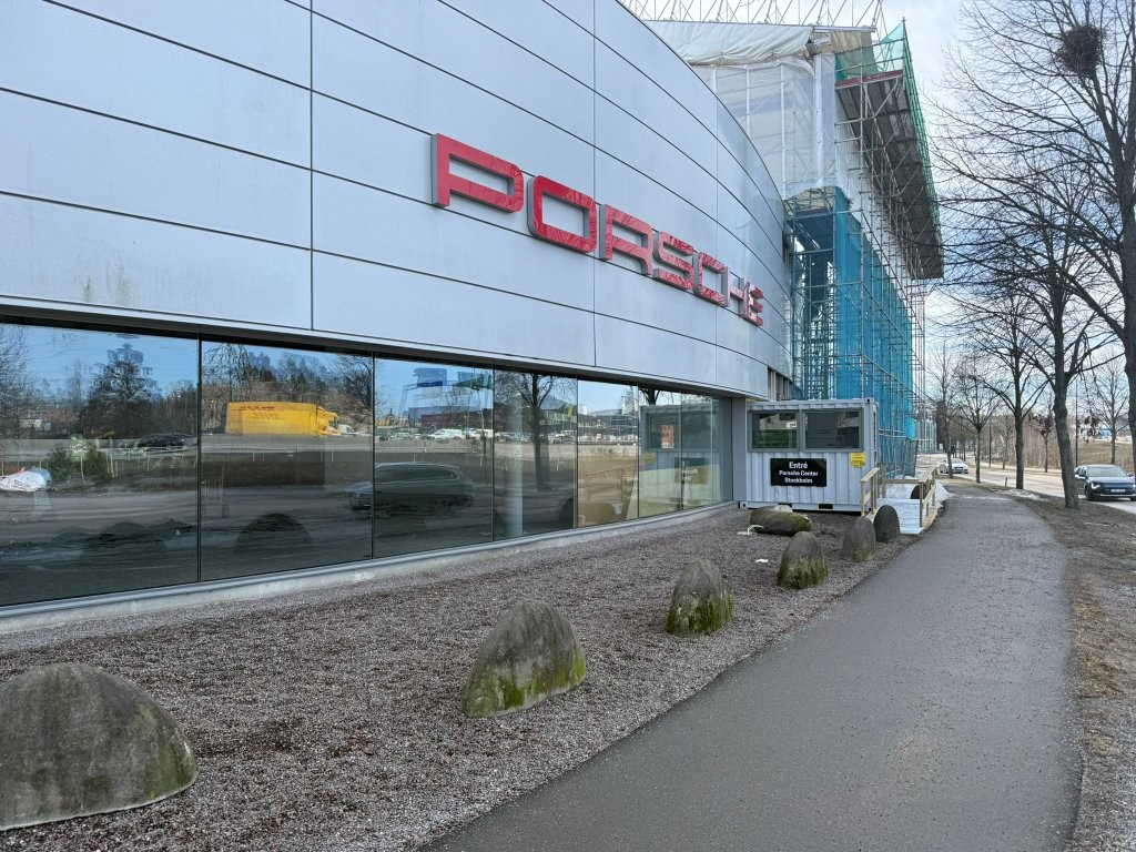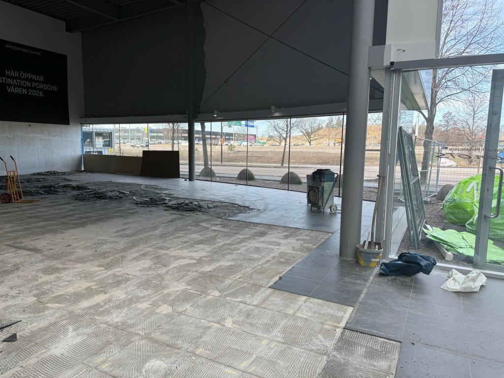 Objekt: Ombyggnad av bilanläggning på fastigheten Visiret 2 Huddinge kommun innehållande försäljningslokaler kontor och verkstad Adress: Smista Allé 44 141 70 Segeltorp Hyresgäst: Porsche Sverige AB är kontorshyresgäst. Bilförsäljning sker i egen regi. Fastighetsägare: Din Bil Sverige AB Lokalyta: 4 000 m2 Arkitekter: XYZDP Generalentreprenör: BRIXLY AB Byggstart: Juni 2025 Färdigställande: Augusti 2026